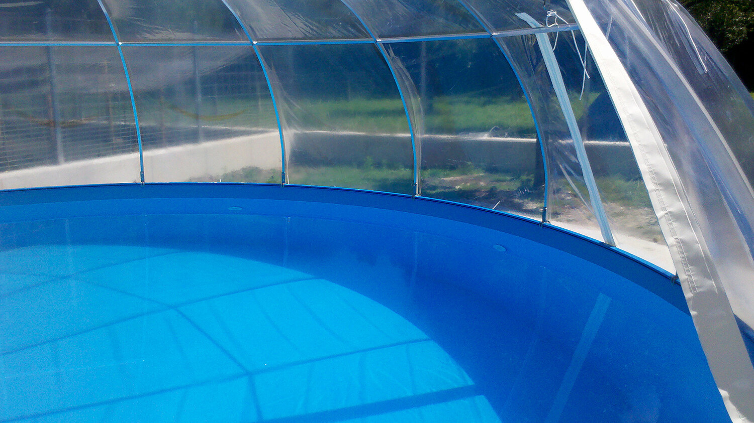 Durch den Einfall von Sonnenlicht und die dabei entstehende Lichtbrechung erwärmen sich Luft und Wasser unter der Folie besonders schnell. Die Wassertemperatur klettert auf Werte, die 5-8 °C höher liegen, als bei gleichen Freibecken. Auch die Abkühlung über Nacht ist deutlich geringer. Bei zu großer Wärme können Sie einfach Eingang und Fenster öffnen, um für Frischluft zu sorgen.